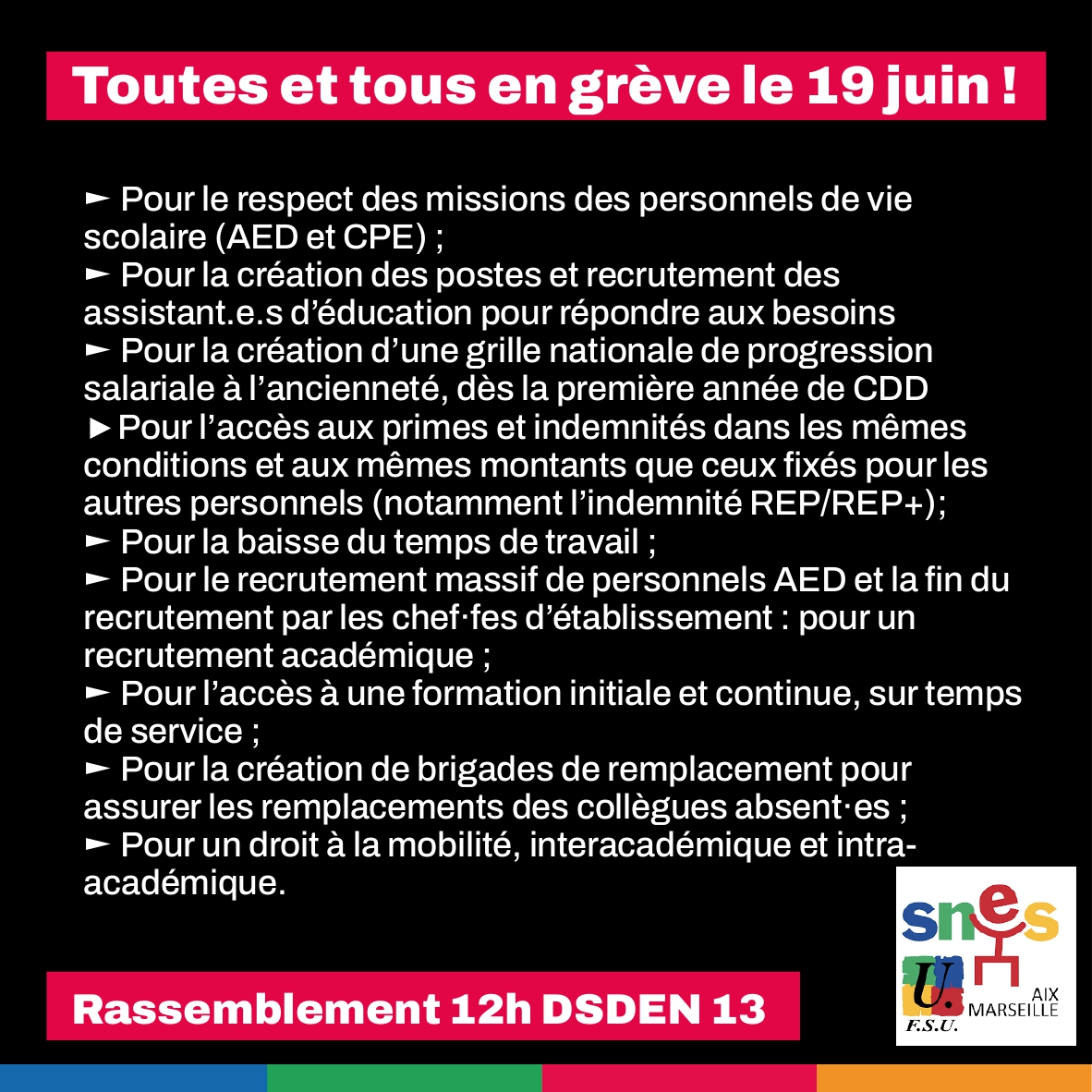 Pour toutes ces raisons, le SNES – FSU Aix Marseille appelle l’ensemble des
