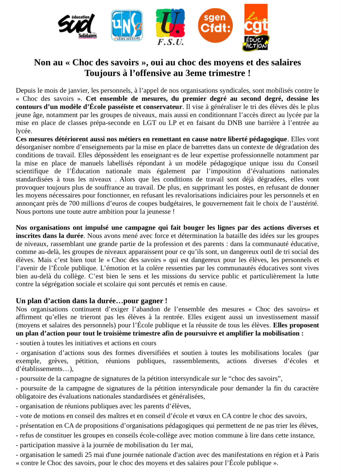 Dès le 6 mai, actions et mobilisations contre le choc des savoirs et le tri social et pour la défense de l’École publique