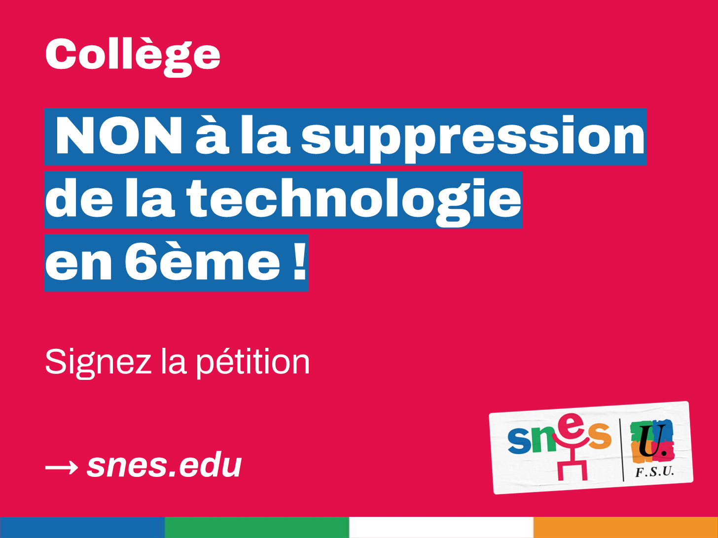 De plus nous allons demander qu’au niveau national soit organisé au cours du premier trimestre entre le SNES-FSU et les associations de professeur.e.s de Technologie un stage ou un colloque sur la discipline avec un temps d’action dont les modalités restent à définir.