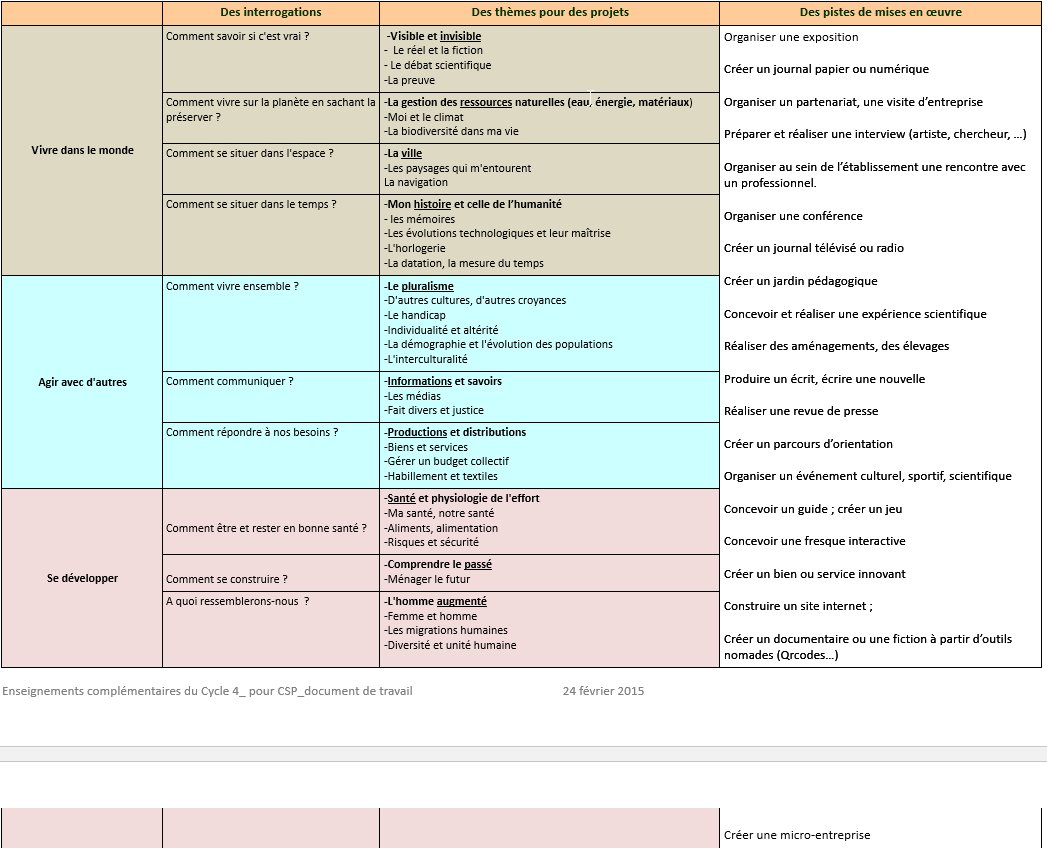 « Ils ne constituent pas un programme bis, mais, en continuité avec les approches disciplinaires, les objectifs et attendus du cycle, ils constituent des possibilités d’approfondissement de thèmes du programme que les enseignants traitent d’un point de vue plus strictement disciplinaire », décrit le CSP.